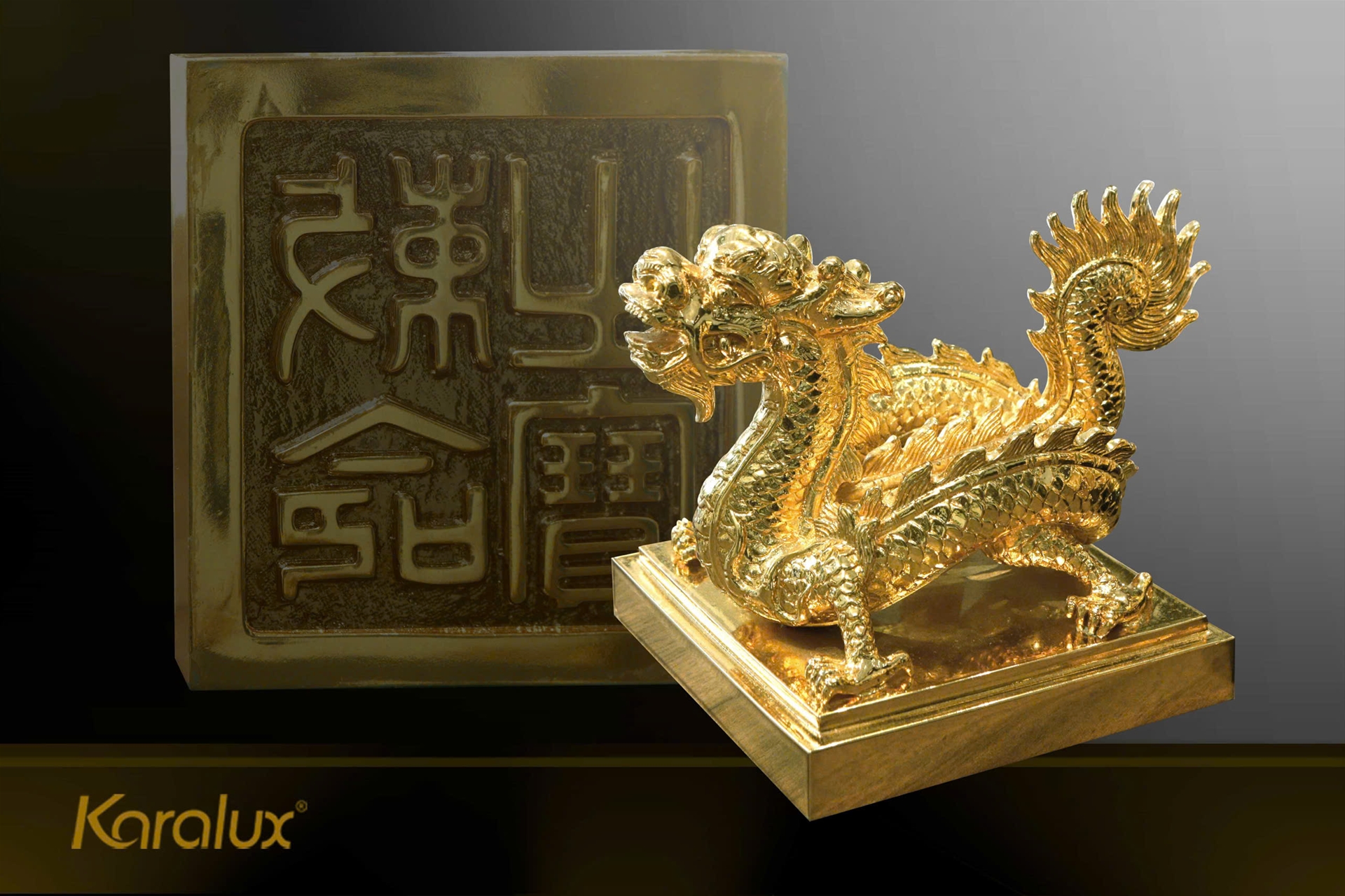 Tranh điêu khắc Song Long tản vân sơn son thiếp vàng 9999
