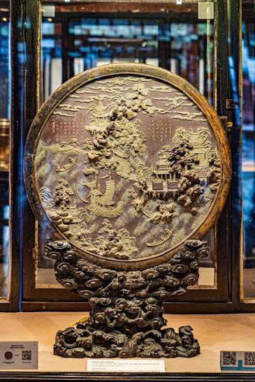 bộ tam sơn khảm ốc sâu tuổi trưng bày tại lão cổ vật