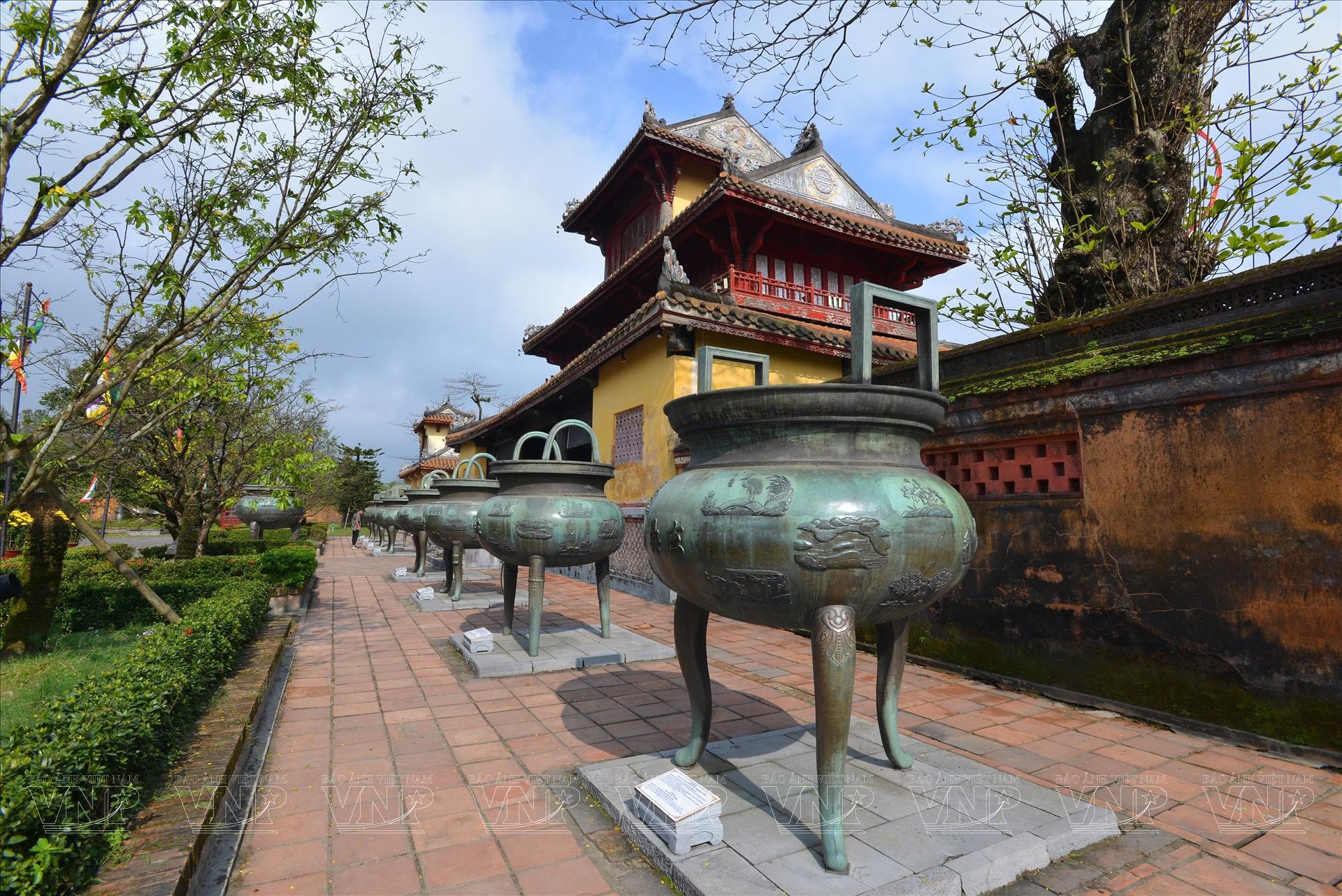 Biểu tượng quyền lực vương triều: Cửu đỉnh được đặt trước Thế Tổ Miếu, gắn với triều Nguyễn, thể hiện uy quyền, sự chính thống và tính bền vững của quốc gia dưới sự trị vì của nhà vua.
