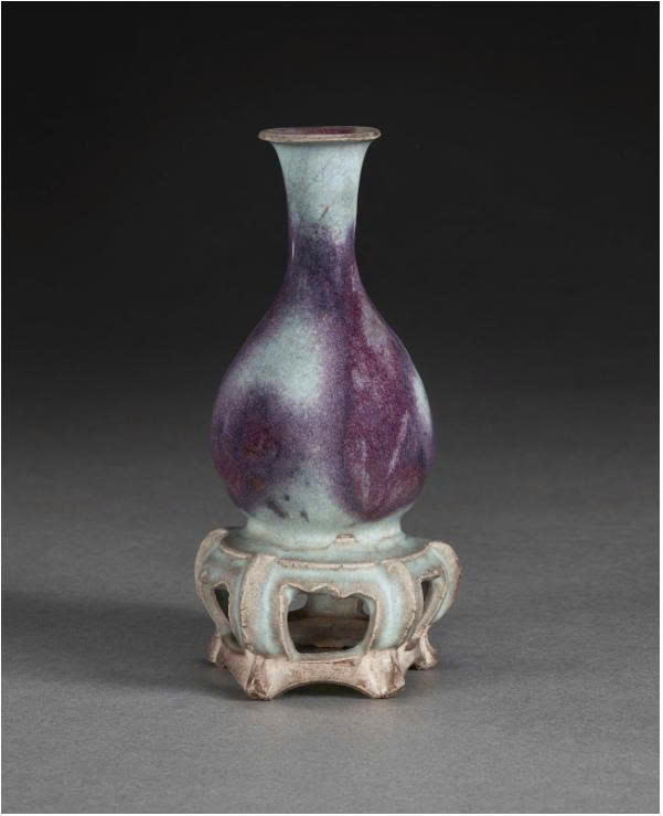 Một chiếc bình Jun phun men tím cực kỳ hiếm, kèm chân đế liền khối, thuộc thời Kim–Nguyên (1115–1368). Cao 7½ inch (19 cm). Ước tính: 30.000–50.000 USD. Được đưa ra trong phiên đấu giá “Important Chinese Art Including the Collection of Dorothy Tapper Goldman” ngày 21 tháng 3 năm 2024 tại Christie's, New York.