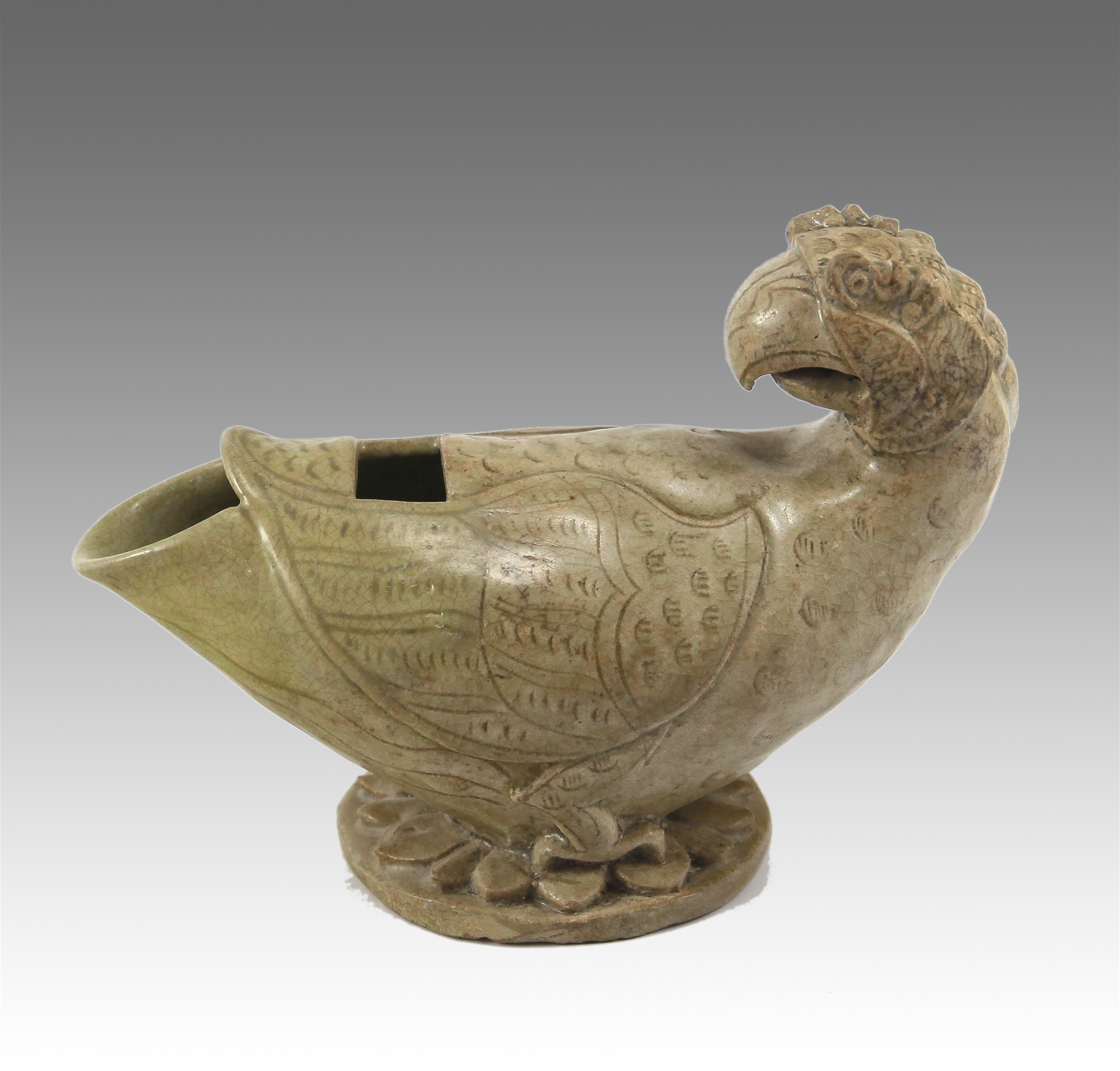 Ấm hình vẹt, gốm men trắng, TK 12-13
