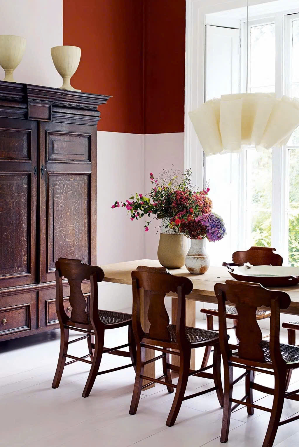 Ghế ăn và tủ có chất liệu và màu sắc tương đồng, tạo nên sự liên kết với màu sơn tường một cách đơn giản nhưng hiệu quả. Ảnh: Jake Curtis