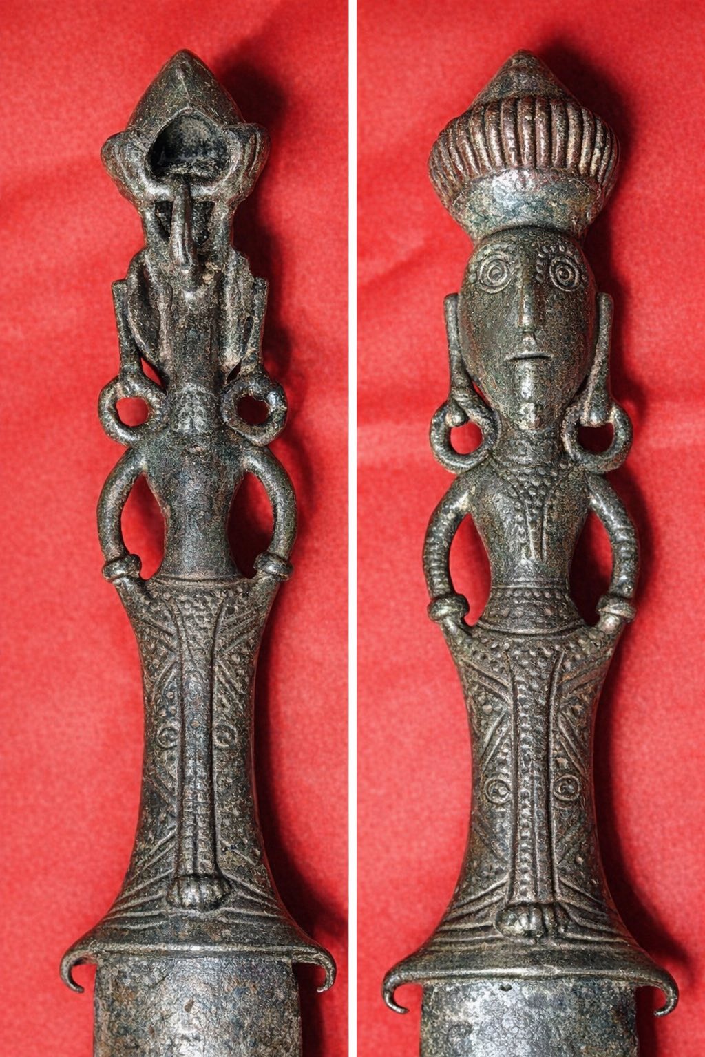 Hiện vật cho thấy trình độ chế tác đồng tinh xảo của cư dân Đông Sơn, đặc biệt là kỹ thuật đúc liền tượng người với cán kiếm. Đồng thời, nó phản ánh quan niệm thẩm mỹ và đời sống tinh thần phong phú của người Việt cổ, nơi quyền lực, vẻ đẹp và sự tôn nghiêm được kết hợp trong cùng một hiện vật.