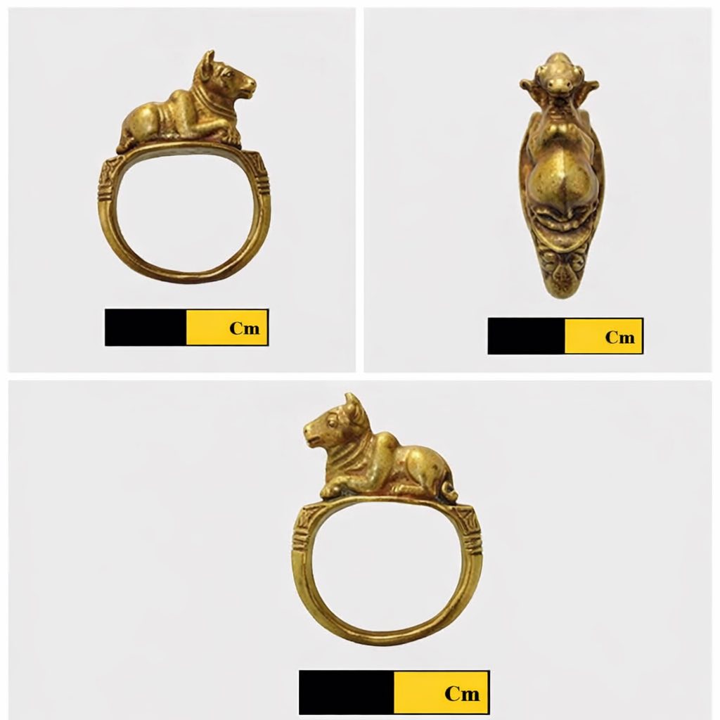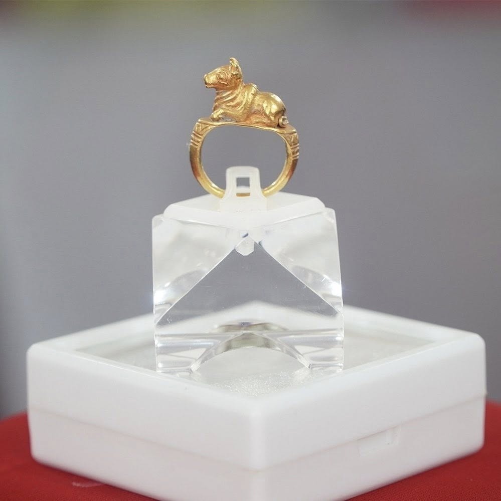 Trước hết, hình tượng bò Nandin – linh vật gắn liền với thần Shiva trong Hindu giáo – thể hiện niềm tin tâm linh và sự giao thoa văn hóa mạnh mẽ của cư dân Óc Eo với Ấn Độ cổ đại. Nandin tượng trưng cho sức mạnh, lòng trung thành và sự bảo hộ, vì vậy chiếc nhẫn có thể được xem như một vật mang ý nghĩa cầu bình an, che chở và kết nối với thần linh.