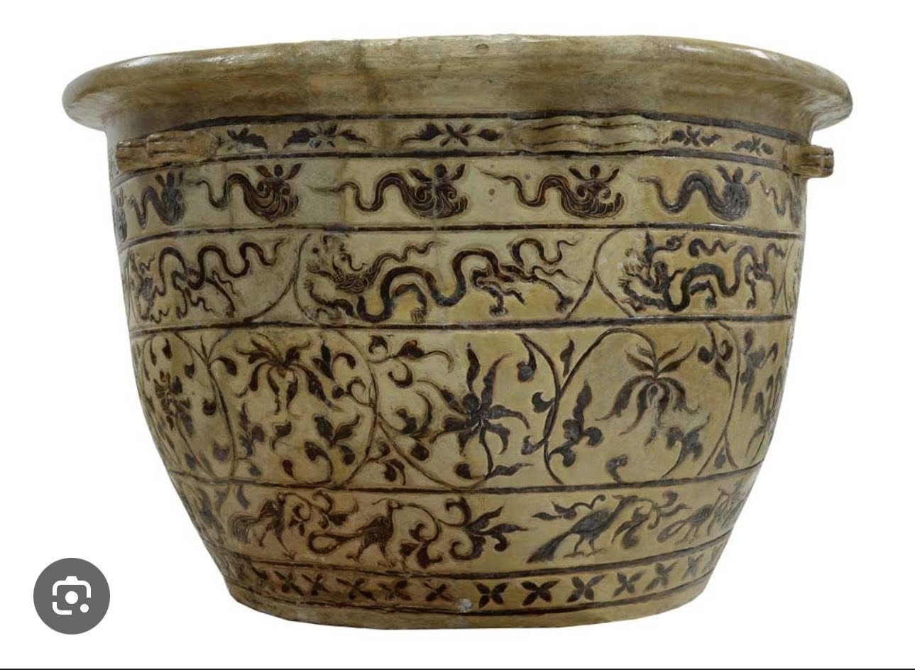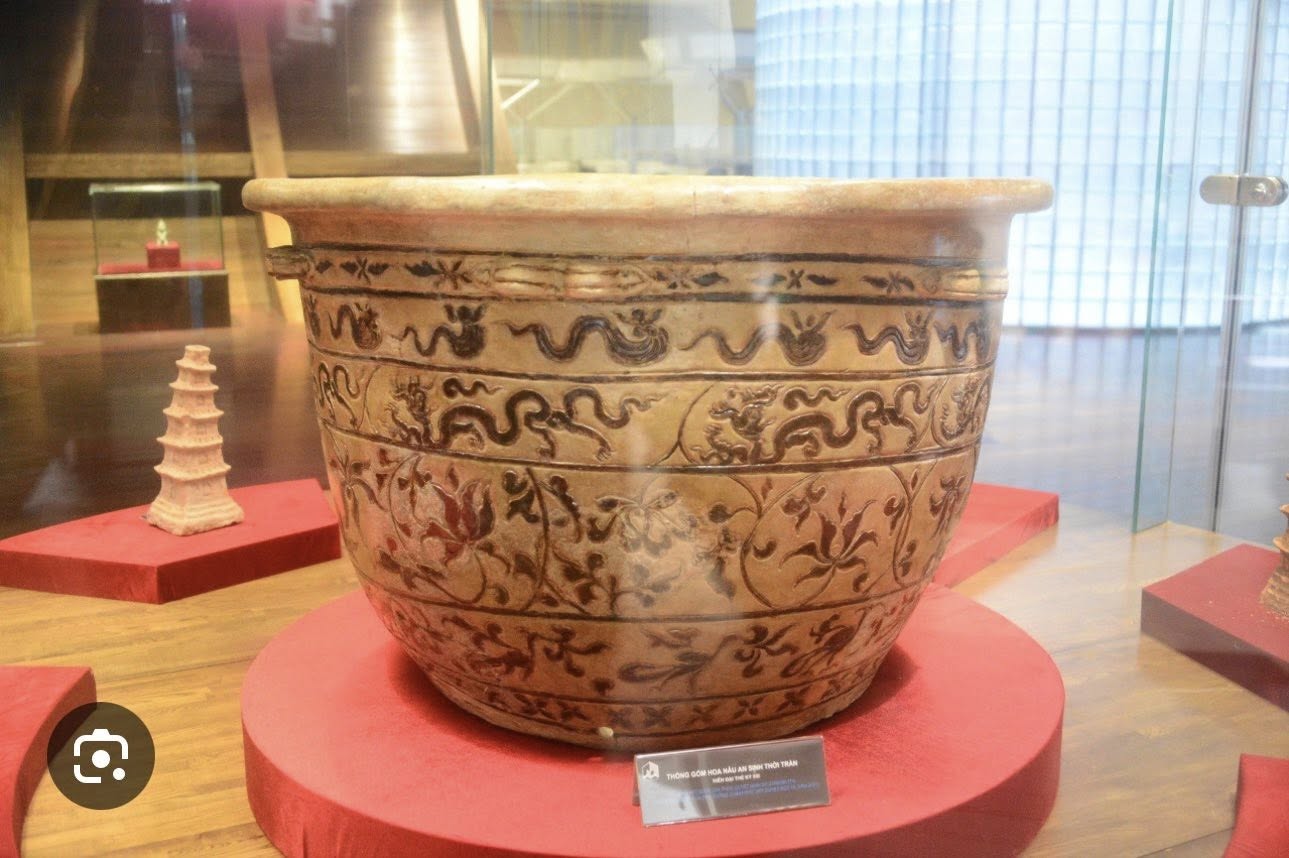 Về văn hoá: thể hiện rõ bản sắc của người Việt thời Nhà Trần thông qua nghệ thuật tạo hình và trang trí tinh tế; các hoa văn như hoa sen, rồng, chim và mây không chỉ mang tính thẩm mỹ mà còn phản ánh tư tưởng và đời sống tinh thần, trong đó hoa sen biểu trưng cho sự thanh cao và ảnh hưởng mạnh mẽ của Phật giáo, rồng tượng trưng cho quyền uy hoàng gia, còn hình chim và mây gợi sự hòa hợp giữa con người với thiên nhiên; hiện vật đồng thời cho thấy gu thẩm mỹ trang nhã, hài hòa và tinh thần sáng tạo của người xưa, góp phần khẳng định sự phát triển rực rỡ của văn hoá Đại Việt và truyền thống thủ công gốm mang đậm dấu ấn dân tộc..jpg)