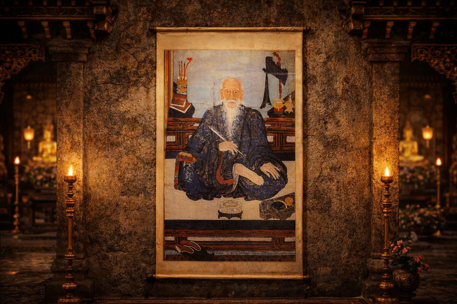 • Bối cảnh: Bức tranh được đặt tại gian thờ chính của nhà thờ dòng họ, nơi tôn vinh "Hai đời Tể tướng, ba đời Đại vương" của gia tộc Nguyễn Quý nổi tiếng về khoa bảng.
